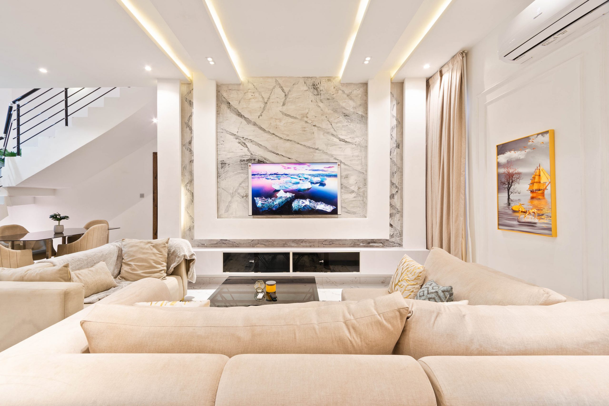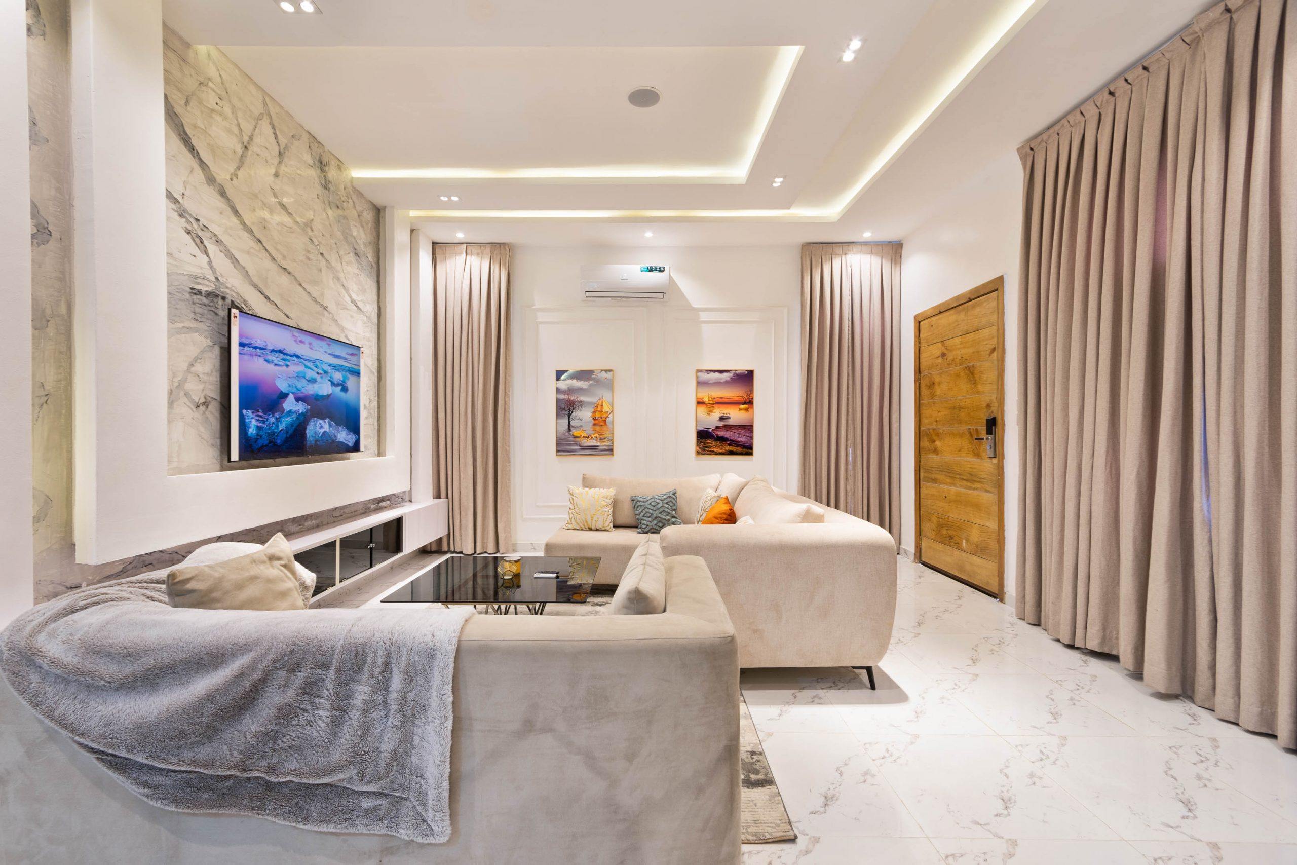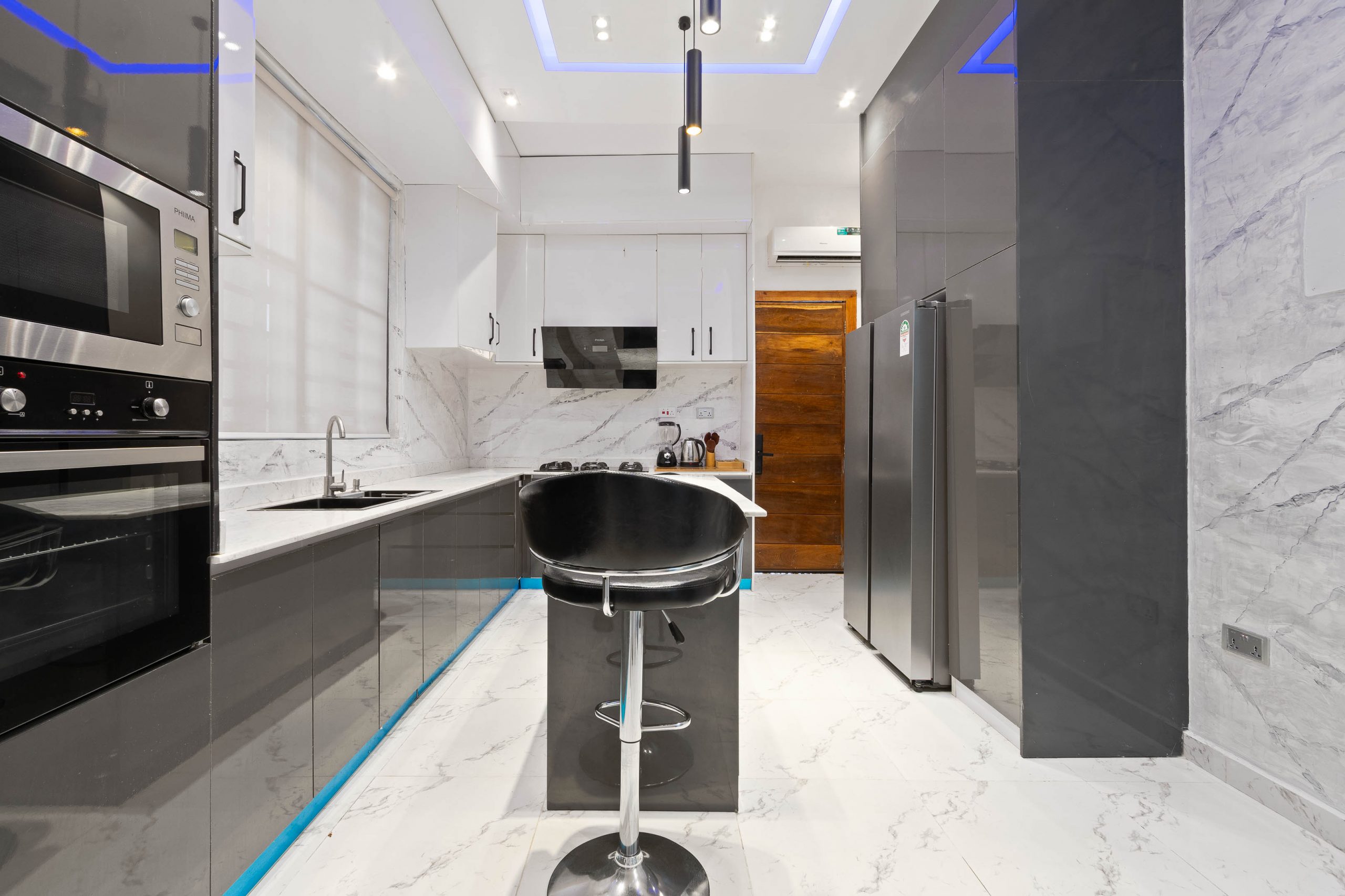 - Amenities: 24/7 Estate Security, 24/7 Power, 24/7 Private Security, Air Condition, Air Hockey Table, All rooms en-suite, Ample Parking Space, Automated Gate, Balcony, Central Water Heating System, Clean Water, Compact Plus DSTV, Family Lounge Area, Free Internet, Fully Fitted Kitchen with Utensils., Housekeeping, In-Built Speakers with Bluetooth & USB Ports., Luxury Dicon Optimum Orthopedic Mattresses., Luxury Furnishing & Lightings, Netflix, No Smoking/Party, Photo/Video Shoot Allowed based on review., Ping Pong / Table Tennis, Pool Table, Separate Laundry Room with Washing Machine and Dryer, Smart Home, Smart TV in all rooms, Swimming Pool, Walk-In Closet, Youtube